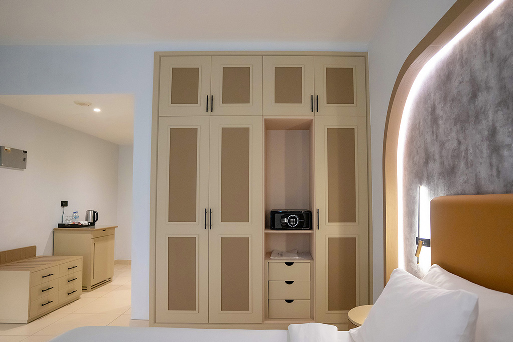 The number of extra beds and cots allowed is dependent on the option you choose. Please check your selected option for more information.